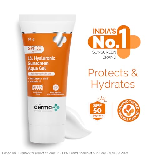 - The product was thoroughly tested in-vivo by an independent laboratory,, in accordance with the recognized protocols. The Derma Co 1% Hyaluronic Sunscreen Aqua Gel SPF 50 PA++++ is in vivo tested, meaning it has undergone real-life skin testing to assess its effectiveness and safety and a proof of the product actually delivering SPF 50 as claimed. The product has broad-spectrum protection against UVA, UVB, and blue light.