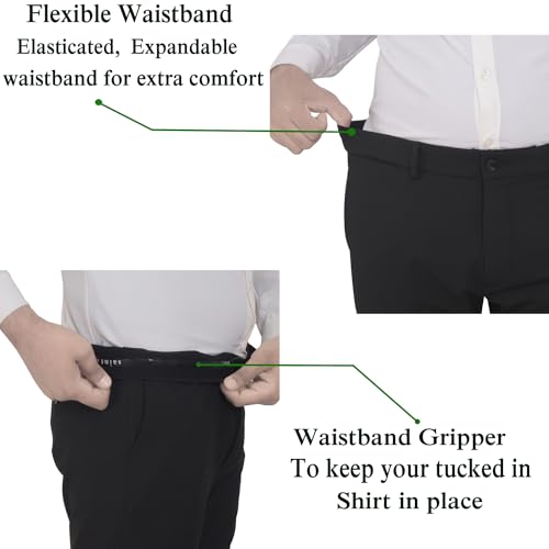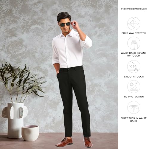 SaintX Men’s Premium Flat Front Stretchable Formal Trouser | Slim Fit | 360° Power Stretch | Office | Party | Anti-Wrinkle & Dust Resistant Triple…, The slim fit and flexi waistband ensure both style and comfort. Crafted from 4-way stretch fabric, they offer flexibility and ease of movement. With a solid color and flat-front, no-pleat design, they exude timeless elegance.,