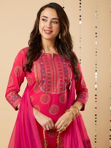 GoSriKi Women’s Cotton Blend Printed Straight Kurta with Pant & Dupatta