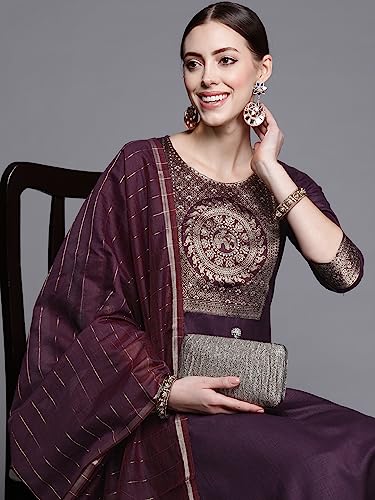 INDO ERA Women’s Cotton Yoke Design Straight Kurta Pant with Dupatta Set