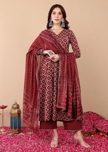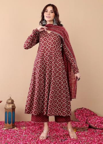 KLOSIA Women’s Viscose Printed Anarkali Kurta and Pant With Dupatta Set