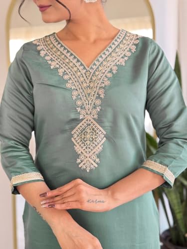 8 reviews for Naixa Women’s Rayon Embroidered Straight Kurta with Pant and Dupatta Sets (Available in Plus Size) (NX-696)