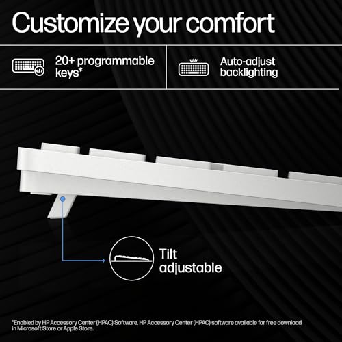 - 【CUSTOMIZABLE KEYS】Optimize how you work with HP Accessory Center and easily program 20+ keys with shortcuts so you can reduce keystrokes for a faster, smoother typing experience