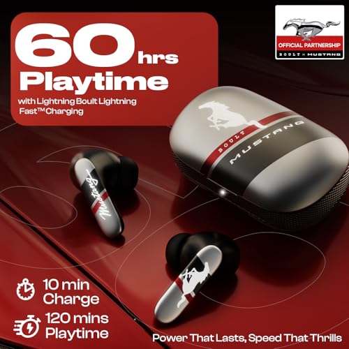 Specification: Boult Mustang Newly Launched Dyno TWS Earbuds with 60H Playtime, App Support, Dual Pairing, 4 Mics ENC, 45ms Low Latency, 13mm Drivers, Touch…