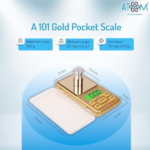 Specification: ATOM Digital Pocket Weighing Scale with 200gmx0.01g Capacity High Precision Mini Weight Machine For Jewellery, Precious Gems with Tare & Counting…