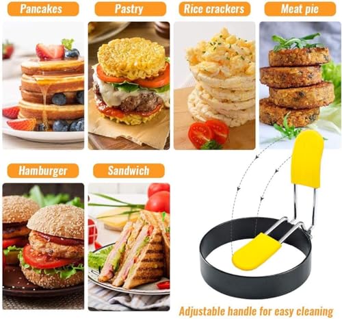 - 💕【Premium Material】: Our egg rings are made from secure food-grade materials. Egg ring is more than a ring for frying eggs, imagination running wild: you can use it on a pan to make delicious fried/griddle eggs, muffin, sandwiches, biscuit, pancake or anything else you love. An Egg Ring Goes A Long Way! Get One Now! ★ A Lucky Day Unfolds with A Perfect Fried/Griddle Egg!