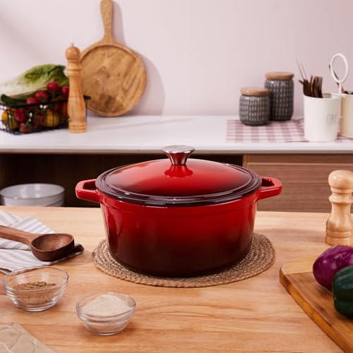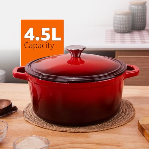 Amazon Basics Enameled Cast Iron Round Dutch Oven Pot with Lid and Dual Handles | Biryani Pot | Iron Kadhai with Lid | Corrosion Proof | Rust…