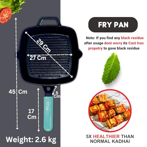 Specification: GEMMA Cast Iron Grill Pan with Silicone Grip(2L) 24cm|Pre-Seasoned|Gas Stove Compatible |100% Pure Cast Iron |Non Toxic|Stick Free -Weight (2.4…
