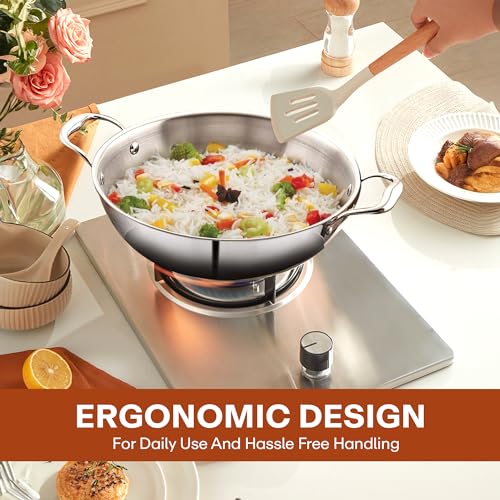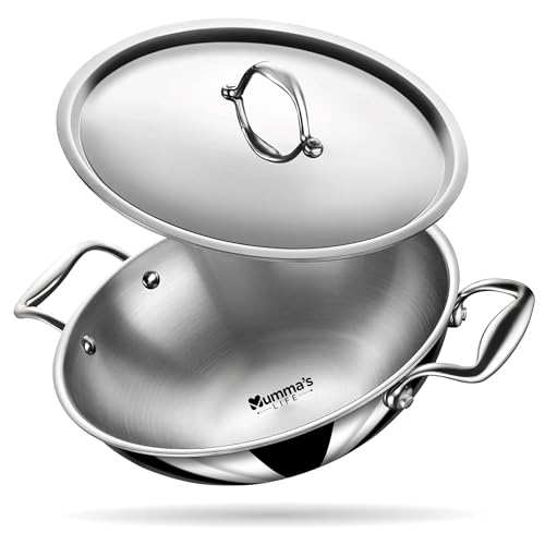 Specification: Mumma’s LIFE Triply Stainless Steel Kadai (3.1L) | Dia-26cm | 2.5mm Thickness | Tri Ply Steel Kadai For Cooking With Heavy Bottom | Gas & Induction…