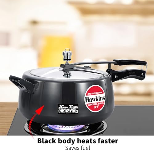 Specification: Hawkins 6.5 Litre Contura Black XT Pressure Cooker, Hard Anodised Inner Lid Cooker, Induction Cooker, Handi Cooker, Black (CXT65)