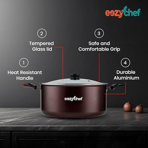Specification: EEZY CHEF 10 Litre Superior Non Stick Biriyani Pot with Sturdy Glass Lid | High Grade Aluminium | Healthy PFOA Free | Cool Touch Handles | 1 Year…
