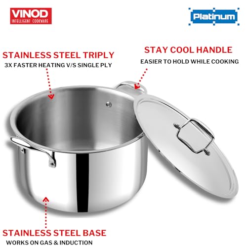 Specification: Vinod Platinum Triply Stainless Steel Biryani/Sauce Pot with Lid – 11 Liters, 30 cm | Heavy Bottom | Multipurpose Cooking Pot | Riveted Handles |…