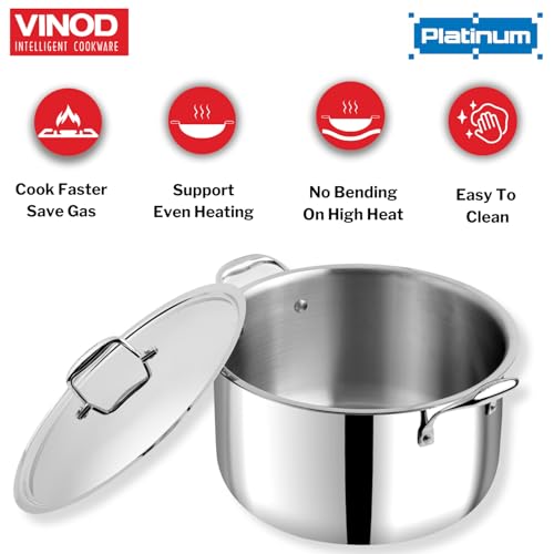 Vinod Platinum Triply Stainless Steel Biryani/Sauce Pot with Lid – 11 Liters, 30 cm | Heavy Bottom | Multipurpose Cooking Pot | Riveted Handles |…,
