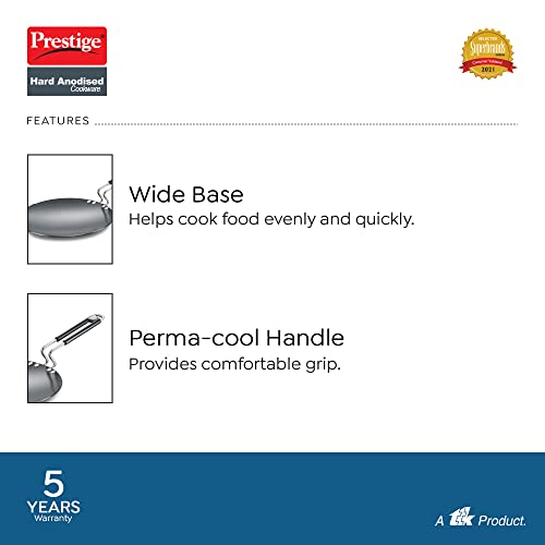 - WIDE BASE Prestige Hard Anodized Cookware has wide base which covers a large area for maximum heat conduction and ensures food is cooked evenly and quickly.