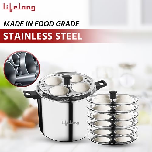 Lifelong Idli Cooker 6 Plate | 24 idlis | Stainless Steel Idli Cooker, Induction and Gas Stove Compatible idli maker (LLIDCKR06, Steel Silver),