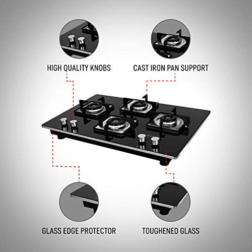 - Comes with glass edge protector. Comes with toughened glass and cast iron finish pan support