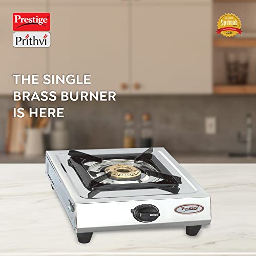 Set Alert for Product: Prestige Gas Stove Prithvi - Single Burner, Silver, Manual Ignition, Stainless Steel - ₹ 1,890