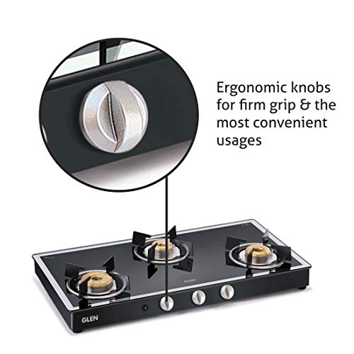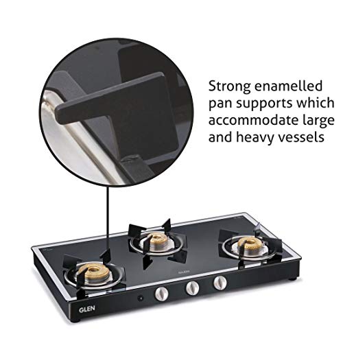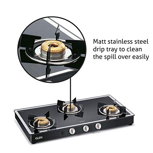 7 reviews for Glen 3 Burner LPG Gas Stove Mirror Finished Glass High Flame Forged Brass Burner, Auto Ignition, Extra Wide Black (1038 GT FB MBL AI)