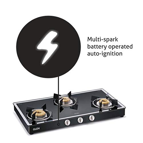- Equipped with 3 Different Forged brass burners: 1 big 1 small and 1 high flame burner for diverse cooking requirements, it has automatic igniton, so no need of lighter or matchstick | Easy to clean 8 mm reinforced mirror finish toughened glass, scratch and stain resistant. Rich matt black body for durable use.