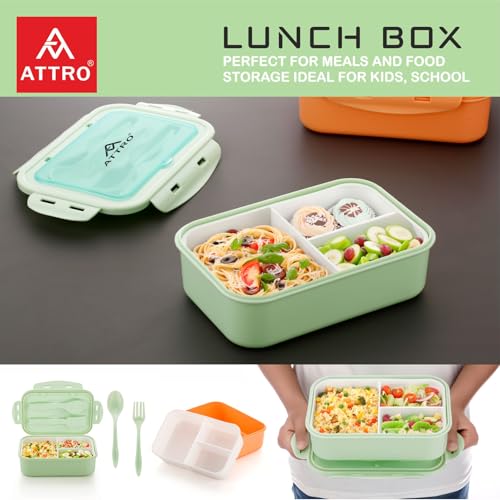 Specification: Attro Carbon Lunch Box with 3 Compartment, Stylish lid & 2 Spoons Made with Heavy Plastic BPA Free Food Grade Perfect for School Kids, College &…