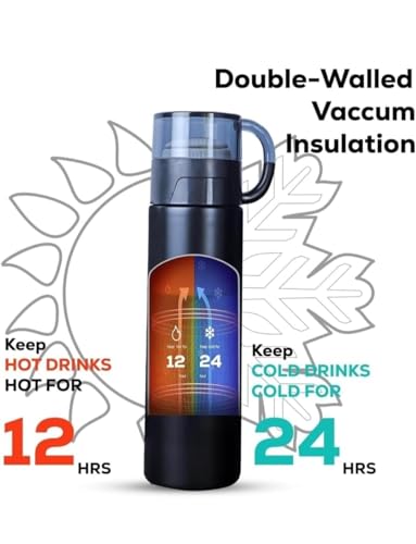 Specification: GIFT INDULGENCE Vacuum Flask Set with 2 Cups Combo – 500 ML – Odourless & Keeps Liquid Hot & Cold- Diwali Gift, Christmas Gift, New Year Gifts for…