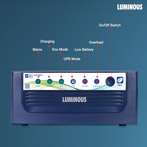 8 reviews for Luminous Inverter & Battery Combo for Home,Office & Shops| Eco Volt Neo 850 Pure Sine Wave 700VA/12V Inverter with Red Charge RC 15000PRO 120Ah…