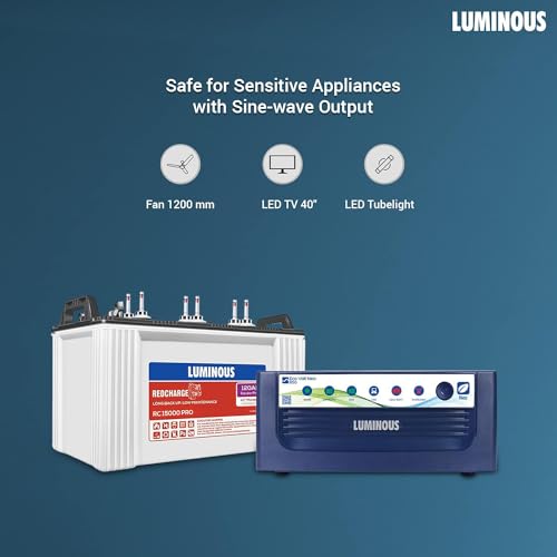 Luminous Inverter & Battery Combo for Home,Office & Shops| Eco Volt Neo 850 Pure Sine Wave 700VA/12V Inverter with Red Charge RC 15000PRO 120Ah…,