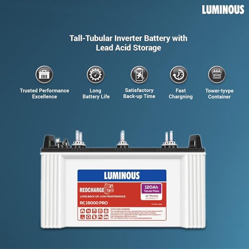 - Battery Details- Type: Short tubular battery; Construction: Rugged; Rated Capacity: 120 Ah/12V; Water Level Indicators: 6