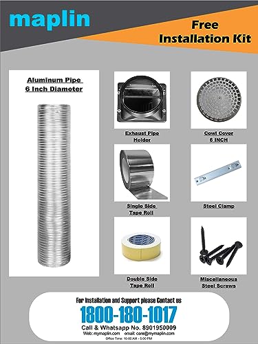 - All installation fitting and accessories are there in box with Standard product(Kitchen Chimney). For Installation customer has to manage by himself/ herself. In case company has service centre in your place you can chose installation by us with a cost of Rs. 600.00. You can check the availability of Service Centre at your place by call us at Toll free No. 1800-180-1017. For Services and support we will provide all required spare parts.