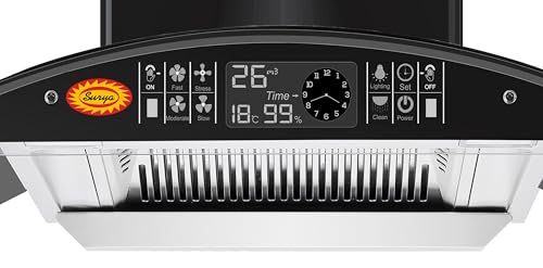 Specification: Surya Kitchen Chimney SS75-2024 New in 75cm with Features Auto Clean, LPG Sensor, Wave Sensor Black
