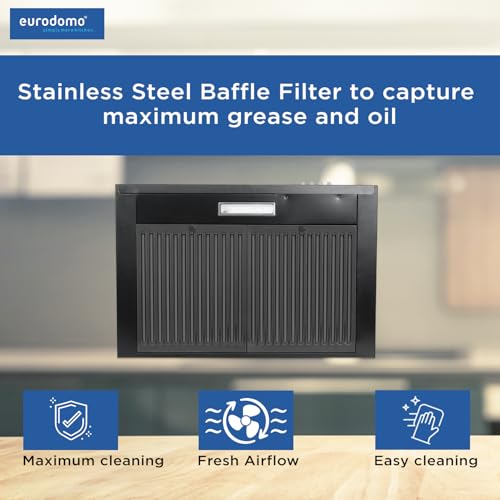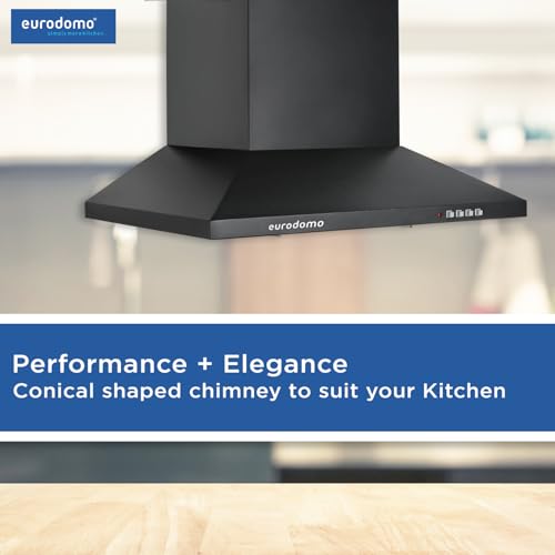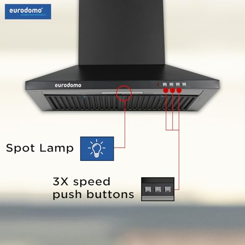 Eurodomo HOOD SAPPHIRE PB BF BK 60 | Pyramid Shape | 3 Layer Baffle Filter| Sturdy Push Button Control | Warranty by Eurodomo |LED Lamp| Made in…