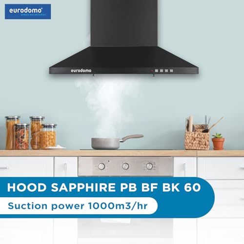 Specification: Eurodomo HOOD SAPPHIRE PB BF BK 60 | Pyramid Shape | 3 Layer Baffle Filter| Sturdy Push Button Control | Warranty by Eurodomo |LED Lamp| Made in…