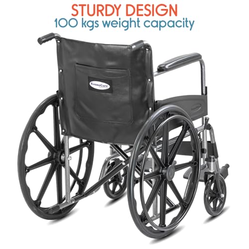 KosmoCare Dura Rexine Wheelchair | Self-Propelled & Attendant Use | Hammered Finish MS Frame | 24″ Mag Wheels | Removable Footrests | Foldable…,
