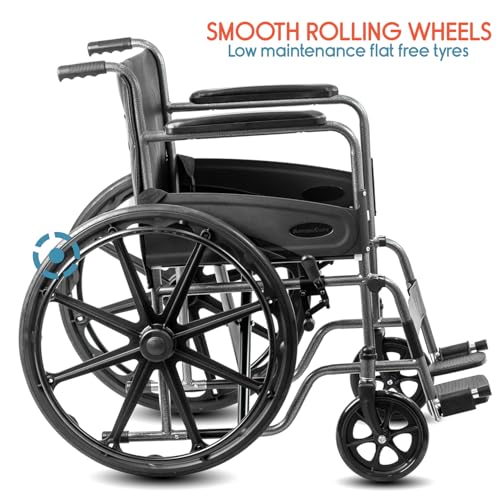 - High-Quality Mag Wheels: Rust-free mag wheels offer superior durability, while the 24″ rear wheels enable smooth self-propelling. The solid PVC front casters swivel 360°, improving maneuverability on different terrains, enhancing mobility and convenience.