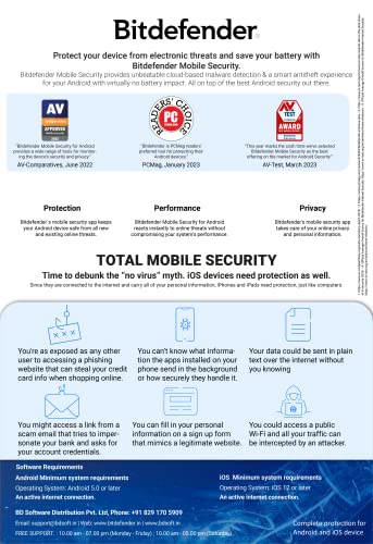 ![Bitdefender 3 Device, 1 Year - Total Mobile Security | Android & iOS | Latest Version |(Single Activation Code) - [Email Delivery in 2 hours - No CD] - Image 4](https://m.media-amazon.com/images/I/41xwE5iaxeL.jpg)